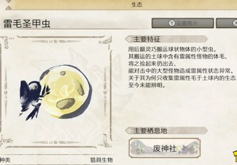 怪物猎人崛起甲虫有哪些?怪物猎人崛起甲虫有什么用?怪物猎人崛起甲虫效果是什么?玩家们都了解吗?要是不了解的话就快来这里看看吧! 怪物猎人崛起甲虫介绍火石圣甲虫也翻译为火石甲虫,名字给人的感觉是带有火属性攻击的生物,用好它们应该可以为猎人的狩猎带来极大的便利。 体内储存着具有爆炸瓦斯的青蛙。一旦瓦斯扩散出去,便会引发一场大爆炸。 它可以在放置地产生爆炸烟雾,持续时间是10秒。 雪石圣甲虫也翻译为雪石甲虫,名字给人的感觉是带有冰属性攻击的生物,用好它们应该可以为猎人的狩猎带来极大的便利。 会搬运含有冰属性成分雪石的小型虫类。雪石命中时,能使目标陷入冰属性状态异常。 冰属性异常状态下的魔物,动作变迟缓,攻击频率降低,对愤怒中魔物最有效,已经疲劳的魔物则无效果。 持续时间为10秒。 泥球圣甲虫也翻译为泥球甲虫,看名字非常的简单粗暴,它们有水属性加成,用好它们应该可以为猎人的狩猎带来极大的便利。 会搬运含有水属性成分泥球的小型虫类。泥球命中时,能使目标陷入水属性状态异常。 水属性异常状态下的魔物,持续时间内它们的肉质越硬的部位会越软。 持续时间为30秒。 雷毛圣甲虫也翻译为雷毛甲虫,它的名字让人有点想吐槽的感觉,不过还是能看出它的雷属性的特点,用好它们应该可以为猎人的狩猎带来极大的便利。 会搬运含有雷属性成分土球的小型虫类。土球命中时,能使目标陷入雷属性状态异常。 雷属性异常状态下的魔物,持续时间内所有武器攻击的任合部位都能累积晕眩值(头部晕眩值一样最高)。 持续时间为30秒。 |