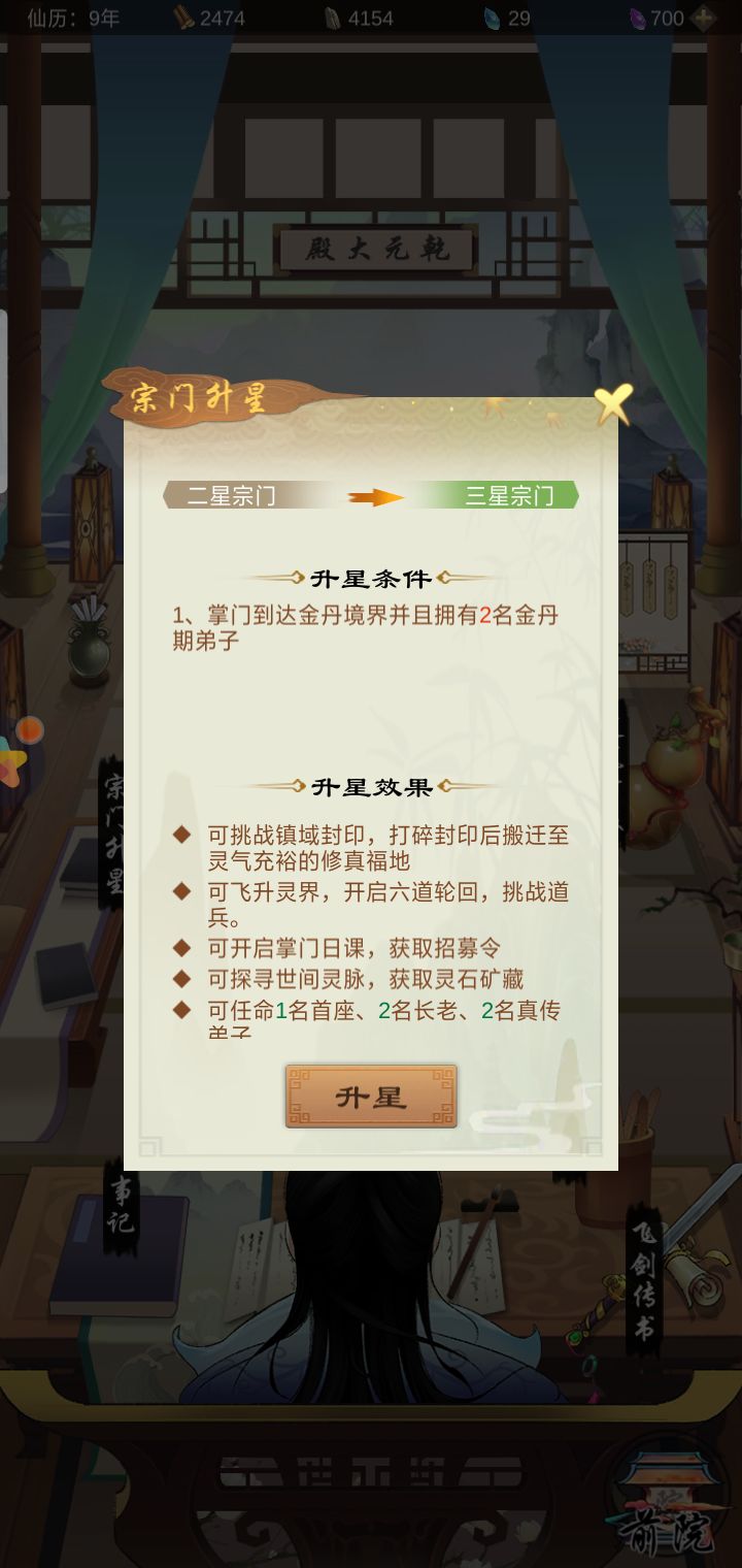 弟子分为攻击、防御、辅助、治疗四个类型,紫色弟子要的材料比橙色少,所以推荐先养一个