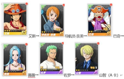上阵伙伴搭配推荐:青雉→黑足·山智→艾尼路→狙击王·撒谎布→奈美→撒谎布→托尼托尼·乔巴→福克斯→强高(伙伴效果:获得20%同类型伙伴的属性增益)