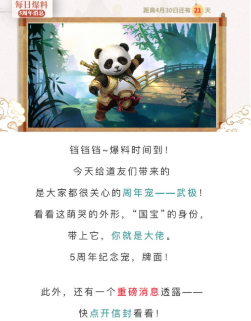 问道手游五周年纪念宠怎么获得?问道手游中五周年纪念宠是武极寒霄,非常可爱的大熊猫,那么下面小编就和大家分享一下五周年纪念宠的获取方法吧。