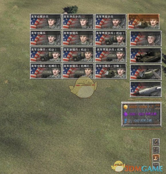 熟悉美苏冷战历史的玩家应该知道美苏之间的军备竞赛,在冷战前期势均力敌,到后期美国开始占据上风,战争小队冷战为了保证游戏公平,美国的兵种载具和苏联一样多。美国兵种一样还是17个,载具稍显先进,游戏更多还是考验排兵布阵,更多如下。