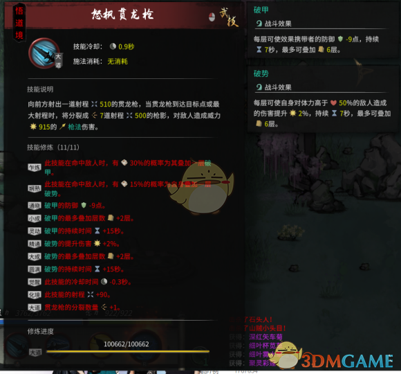《鬼谷八荒》最强悟道境枪修配置词条: