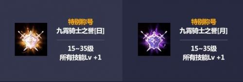 dnf2021五一套装称号怎么样?每年的五一套餐礼包中最值得关注的就是称号了。这次的称号有4个普通称号和2个特别称号,不同称号的属性也是不同的。相信大家也都比较好奇具体的称号怎么获得吧。下面就来看看具体的内容吧。 dnf2021五一套装称号 DNF2021初夏耕耘礼包中有1个九霄骑士宝珠称号自选礼盒,开启后,可以从4种骑士之誓称号和旷古之日月风华称号宝珠自选礼盒(4个)中,选择获得1个。 骑士之誓称号有以下四种,四种称号都可使用【日月争辉称号宝珠】以及【旷古之日月风华宝珠】进行附魔 通用属性 四维+80,三速+3%,命中率+3%,回避率+3% HP Max,MP Max+250,HP,MP每分钟恢复24,城镇移动速度+20% 同时,可使用15个九霄之庇佑兑换获得九霄骑士特别称号套装礼盒,开启后,可以从九霄骑士之誉[日]和九霄骑士之誉[月]中获得1个称号,同时获得1个技能提升称号宝珠自选礼盒 通用属性 四维+80,三速+3%,命中率+3%,回避率+3% HP Max,MP Max +250,HP,MP每分钟恢复24,城镇移动速度+20% |