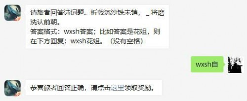 答案格式:wxsh答案;比如答案是花姐,则在下方回复:wxsh花姐。(没有空格)