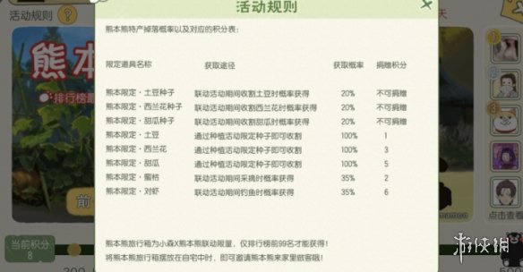 小森生活对虾怎么获得?在小森生活游戏中的对虾是熊本熊活动的限定道具,但是很多玩家都不知道怎么获得,那么想知道的就和小编一起来看看吧。 小森生活对虾怎么获得一、方法 对虾比蜜桔更容易获得一些,玩家通关正常的钓鱼就可以获得,对虾一般会和鱼一起钓上来。 熊本限定对虾:联动活动期间钓鱼时概率获得35。 二、获取概率捐赠积分 熊本限.土豆种子:联动活动期间收割土豆时概率获得20%,不可捐赠 熊本限定西兰花种子:联动活动期间收割西兰花时概率获得20%,不可捐赠 熊本限定甜瓜种子:联动活动期间收割甜瓜时概率获得20%,不可捐赠 熊本限定土豆:通过种植活动限定种子即可收割100% 熊本限定西兰花:通过种植活动限定种子即可收割100% 熊本限定甜瓜:通过种植活动限定种子即可收割100% 熊本限定蜜桔:联动活动期间采摘时概率获得35% 熊本限定对虾:联动活动期间钓鱼时概率获得35% |