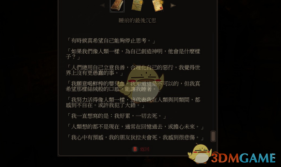 与其说巫师3:狂猎是一个角色扮演类游戏,倒不如说这是一部长篇史诗电影,一本荡气回肠的故事,每个情节每个故事都可以让玩家产生共情。显然痴迷于剧情的玩家想要血与酒达成完美结局,何不看看下面的剧情走向,对的选择指向对的结局。 巫师3血与酒完美结局攻略: 长牙之夜开始总共玩了四次:把姐妹双杀/姐妹存活/狄拉夫存活都打出来了,但唯一能让我不留遗憾的还是让狄拉夫杀死席安娜的结局。 1.女爵可以说是各方面都不错的一位领主,但对待姐姐的问题上就相当莫名其妙了。小时候一声不吭将其出卖,虽然在和解结局中说自己一直派人找她,但怎么就从未特赦过被流放的席安娜?基本上可以说她掌权后从未给过席安娜真正的帮助,而在狄拉夫攻城之后却一味袒护后者,导致城内百姓遭殃,使我对她好感尽失(而且不能啪...嗯好吧朋友的前女友还是不能动的) 2.席安娜就不用多说了,整个事件的罪魁祸首,同时也是受害者。遭遇确实不公,但利用吸血鬼进行报复,谋杀亲妹妹,并导致可以预见的危险,没得洗 3.狄拉夫,心地善良但是耿直冲动。虽然造成了吸血鬼屠城,但显然放走他不会导致更多人遭殃,也是损失最小的方案 关键是放走狄拉夫是对老基友雷吉斯而言唯一一个好结局。整个血与酒事件里,最痛苦的就是他了,其他结局里他都不得不为了杰哥背下对吸 4.血鬼而言最为沉重的黑锅,不得不杀死恩人狄拉夫,你忍心吗? 最后附上一份雷吉斯的日记,看到这一份日记之后我更是心疼雷吉斯了 相关攻略:巫师3恶灵缠身完美结局 |