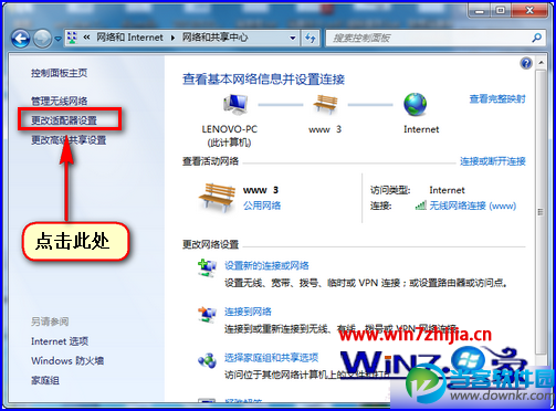 2、在打开的界面中,点击左侧的“更改适配器设置”项;