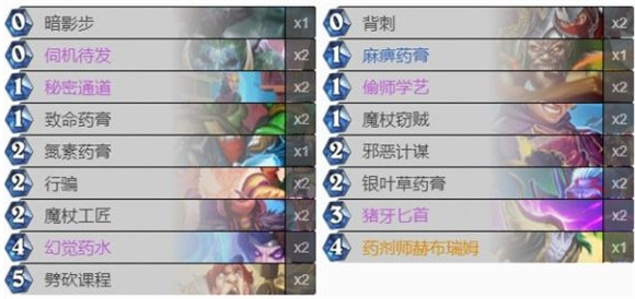 炉石传说贫瘠之地潜行者成就怎么做?贫瘠之地的成就非常多,其中“潜行者”的成就还是比较复杂的,那么潜行者全部成就如何达成呢?下面带来贫瘠之地潜行者成就攻略介绍,希望对小伙伴们有所帮助。 贫瘠之地潜行者成就攻略详解1.奇迹重现:使用潜行者,在一个回合内使用12张牌。 这个特别简单,直接去经典模式打几把奇迹贼就行了,想到奇迹贼小编只想说‘秋日永远的神’! 2.盗用身份非儿戏:偷师学艺习得所有10种英雄技能。 这个需要靠回收魔杖工匠找偷师学艺,不过你要记得记录一下你使用过的技能,防止浪费时间。 3.别碰刀刃:为猪牙匕首淬上4种不同的药膏。 这个成就也算挺简单的,想做快点就起手留猪牙匕首,然后过牌和发现找齐4种药膏给猪牙匕首涂上就行了。 |