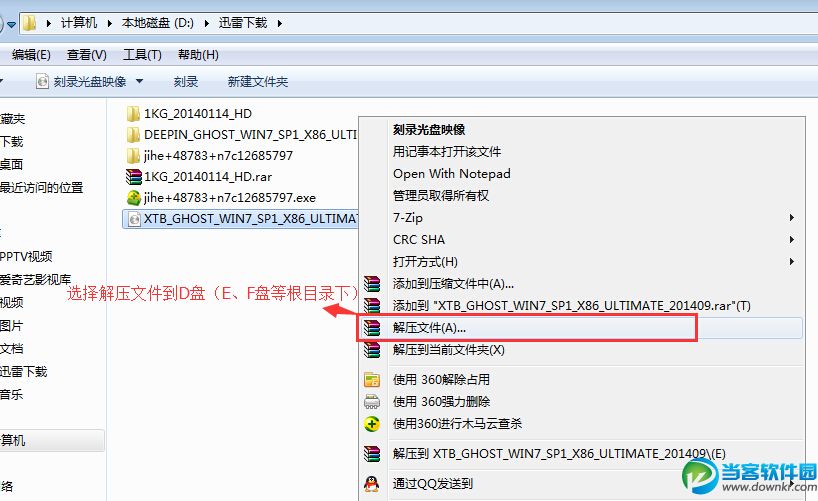 一、系统下载完成之后,右键单击系统ISO镜像,弹出菜单选择与本系统文件名称系统同的解压到XXXX选项;