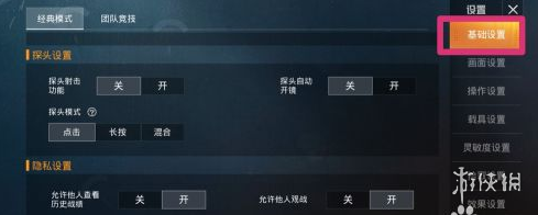 和平精英左右探头不见了怎么设置?左右探头是游戏中非常好用的一个设置,但是更新之后很多玩家的左右探头设置不见了,接下来就和小编一起来看看具体的探头设置恢复方法。 和平精英左右探头恢复设置方法介绍1.如下图所示,玩和平精英游戏时,发现页面的左边没有左右探头。 2.进入和平精英主界面,点击页面右下角的设置图标。如果已经开始游戏,在点击页面右上角的设置图标。 3.进入和平精英设置界面后,点击基础设置。 4.进入和平精英基础设置界面后,找到探头设置。点击探头功能后面的开字,左右探头就开启了。 5.左右探头开启后,还可以把探头自动开镜打开同时,探头模式也可以选择混合。 6.退出设置界面,进入和平精英游戏,就可以看到页面右边显示左右探头的图标了。 |