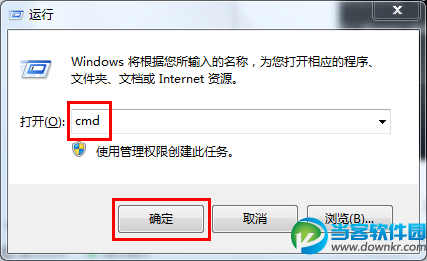 1.使用组合快捷键“win+r”打开运行,输入“cmd”,回车确定
