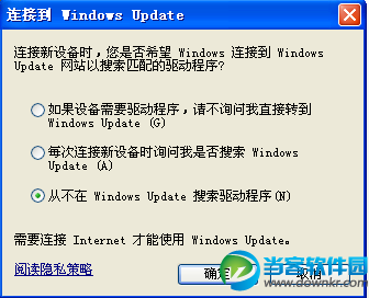 1、“我的电脑”图标右键,选择“属性”选项。 2、在打开的“系统属性”窗口中,切换到“硬件”标签页,点击“驱动程序”栏下的“Windows Update”按钮。 3、在弹出的对话框中选择“从不在Windows Update搜索驱动程序”选项,单击“确定”键并关闭“系统属性”窗口即可。 以上就是XP纯净版系统怎样关闭将驱动程序搜索提示的方法,有需要的用户可以自己按照步骤去设置一下。 |