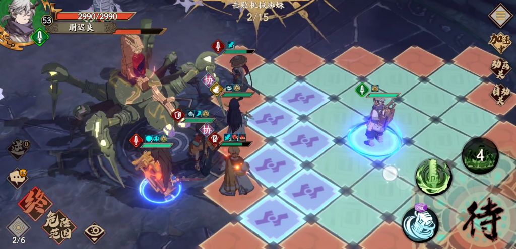 打法1:技能是熬牙,珠眼,背甲,大家参考一下站位,开局男主蜘蛛刷曹无名,蜘蛛挡刀,然后男主撤退挂机,其他4人三角站位,夏侯练度2700,上去打不会自爆就行了,剑平2000用的冰离得20魂石,其他都是2000出头练度,15魂石极身+10