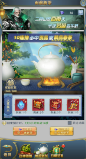 活动期间,花费钻石煮茶,即可获得丰厚奖励。