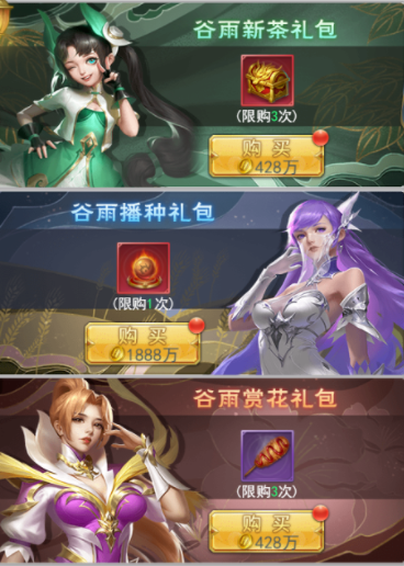 活动期间,开放金币礼包供玩家购买,每种礼包有购买次数上限。