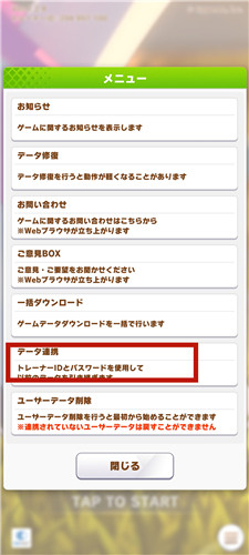 记住自己的引继码账号和设置密码之后,在启动游戏的开始画面点击右下角的功能按钮。