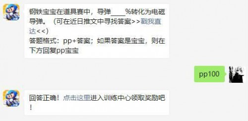 钢铁宝宝在道具赛中,导弹_____%转化为电磁导弹。(可在近日推文中寻找答案>>戳我直达<<)