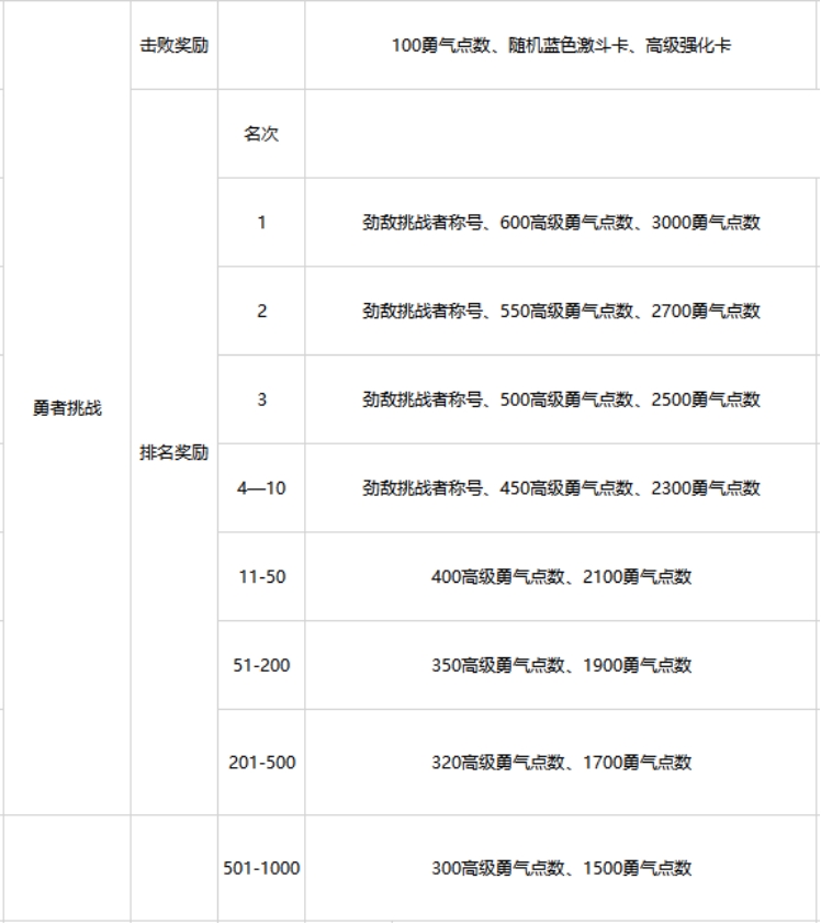 航海王热血航线挑战玩法应该怎么玩?航海王热血航线挑战玩法应该注意什么?航海王热血航线挑战玩法有什么奖励,小编这就为玩家们介绍一下! 航海王热血航线挑战玩法入门攻略挑战玩法共有7个模式,它们分别是无尽探险、寻宝之旅、伙伴试炼、勇闯推进城、强敌降临、勇者挑战以及海岛探险。——模式百科——#无尽探险解锁条件:完成主线第4章任务6开放时间:全天模式介绍:无尽探险分为力之探险、技之探险、心之探险,每种探险模式有着固定的类型限制。每一类型挑战共有12层关卡,玩家需要使用对应类型的伙伴参与挑战,成功通过对应关卡即可获得掉落奖励。 玩家每天有3次获得奖励的机会。玩家在挑战这个玩法的时候,建议在有机会的情况下,先进行组队挑战,然后再进行单人挑战。这样的目的也是为了优先获得资源,从而提升伙伴战力,接着在进行单人挑战的时候,可以获得更多的增益。在挑战过程中,玩家需要留意好挑战时间,同时注意波次,这样可以避免技能的浪费。战斗过程中,玩家除了要利用好闪避技能之外,同时要合理利用好伙伴技能的效果,争取将伤害增加到最大。若是伙伴没有对应的卡片,那么装备最强力的卡片也是可以的。资源获取情况: ▲资源分布 ▲战意卡 ▲星石强化卡(特·高)#寻宝之旅解锁条件:完成主线第2章任务8(深海突围战)、第5章任务6(功夫争霸赛)、第6章任务5(雪地遭遇战)、第6章任务8(乱斗马戏团)开放时间:全天模式介绍:寻宝之旅分为深海突围战、功夫争霸赛、雪地遭遇战以及乱斗马戏团。玩家可全天自由参与玩法,这4种玩法获取的资源奖励是不同的。其中深海突围战分力、技、心,三种不同属性的挑战,成功过关即可选择进入下一关(通关后可花费体力进行扫荡),每次消耗20体力值。 寻宝之旅因为关卡的不同,所遇到的敌人也是不一样的。在挑战过程中,建议玩家们入场后,可以先拉怪,然后再集中进行输出,这样可以快速过关,同时技能的效果也能到达最大。因为在过关之后可以扫荡,所以在游戏结束之前,玩家可以将余下的体力值用来扫荡,这样可以额外获得更多的资源,同时船长经验也是可以获得的。觉醒石资源: ▲奖励设定▼ ▲觉醒石图鉴冒险笔记: 雪地遭遇战共有10个关卡,每个关卡所获得的卡片进化材料不同,从1阶~10阶,阶级越高,获得的关卡也就越高。这个不分属性,所以只要是对应阶级的卡片进化,都是可以使用的。 乱斗马戏团分7个关卡,每个关卡获得强化卡的等级和数量都不同,强化卡等级越高,关卡也就越难。强化卡共分初级、中级、高级以及特级,特级在该挑战玩法中无法获得。 #伙伴试炼解锁条件:解锁A级以上伙伴后可开启对应伙伴试炼。开放时间:全天模式介绍:伙伴试炼可以让玩家使用对应角色进行试炼,每个伙伴试炼关卡共5关,每一关有3个挑战目标,全部满星过关可开启试炼奖励(2个伙伴碎片)。 玩家每日可有6次挑战机会(30级),每次挑战需要消耗10点体力值。船长等级提升后,次数也会提升。(SS级伙伴需要消耗额外试炼之钥进入关卡,试炼之钥每日凌晨5点重置。)资源奖励:1/3/5关可获得对应伙伴碎片,2/4可获得普通召唤卷。 ▲伙伴碎片碎片的获得可不单单只有伙伴试炼,召唤也是可以获得的,所以大家可以优先使用召唤卷,然后再去进行伙伴试炼。#勇闯推进城解锁条件:每周一开放一期开放时间:全天模式介绍:勇闯推进城共6层,每一期可以挑战三层,第三层分“普通”和“困难”两种难度,后者挑战怪物更为强大,同时奖励也更为丰富。每一层挑战使用的伙伴,在下一层无法作为主站出场。每层挑战会有着对应的推荐属性、能力、战力,同时不同层数有着不同的地形限制,这将会弱化伙伴的能力,如攻击力降低、生命恢复效果降低、基础属性降低防御降低等等。 挑战玩法:在闯关中,地图中会有许多巡逻的小兵,我们必须躲避他们的视野,然后打开监狱,并挑战监狱中的敌人;完成挑战之后,获得钥匙,接着玩家可以打开通道,继续挑战其余3个监狱的敌人,最终击败守关BOSS赢得胜利。地图中,某些监狱里面有着增益酒桶,使用酒桶可以获得增益效果。(若是被巡逻小兵发现,那么会获得削弱效果,如防御力、攻击力减少等效果。) 每次挑战之前,可以选择一个跨层效果和本层效果,这些效果可以加强出战伙伴属性,如暴击率、暴击伤害、攻击力、奥义伤害等等。(增益效果分等级,等级越高,增益也越强)在挑战过程中,玩家不要忘记去寻找一些增益监狱,在这些监狱中我们可以获得强力的效果增益,这对于我们的挑战是极有帮助的。当然想要获得更多奖励,那么尽可能将全部监狱都打通,这样收集度才能百分之百噢!资源获取情况: 获取的凭证可以在秘密商店中购买伙伴碎片、贝里、冒险笔记、高级·特级奥义卡。 ▲高级交易凭证 ▲交易凭证 ▲速效活力剂#勇者挑战解锁条件:完成主线第7章任务15开放时间:开放模式介绍:勇者挑战会根据玩家等级划分战场,在对应战场中,玩家可以使用对应属性的伙伴进行挑战。每期系统将会随机抽取力、技、心三属性的强敌BOSS,玩家每天可挑战4次,击败强敌即可获取击败奖励,同时根据挑战的得分情况,玩家还可以来获取排名奖励。挑战玩法:每期强敌BOSS的难度分为简单、普通、精英、噩梦、炼狱,每次挑战会根据造成伤害、是否击败、击败用时统计得分。挑战时会有限定属性、推荐战