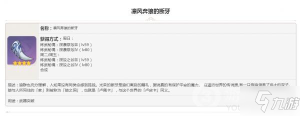 《原神》是由米哈游自主研发的一款全新开放世界冒险游戏。游戏发生在一个被称作「提瓦特」的幻想世界,在这里,被神选中的人将被授予「神之眼」,引导元素之力。这次给大家带来的是原神掉落素材凛风奔狼的断牙图鉴大全。