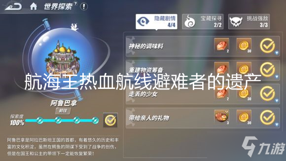 今天为大家继续更新航海王热血航线阿鲁巴拿探索攻略宝藏探寻中的避难者的遗产任务攻略,希望可以帮助到大家。