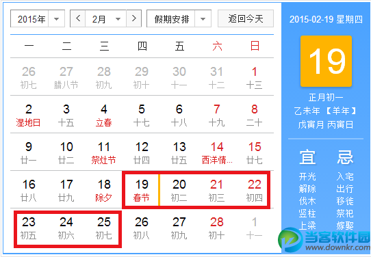 2015年春节放假安排:2月19日至2月25日,共放假7天。