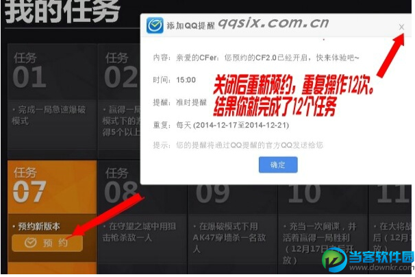 点击预约任务,然后关闭窗口。 重复预约12次,相当于完成12次任务,就可以领取Barrett翔龙 M4A1翔龙了