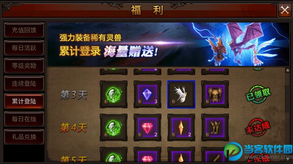 一、登入游戏的第三天在累计登入中领取