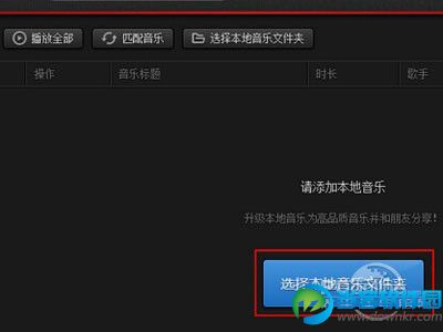4、进入本地音乐界面后会显示已经添加的本地音乐,初次使用的话是空的,点击上面的选择本地音乐文件夹。