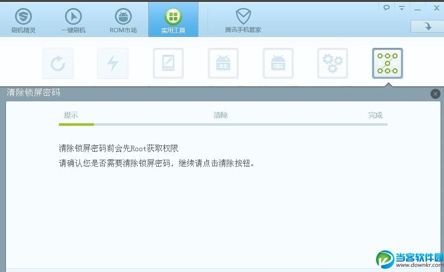 2、解除手机解锁图案需要获取root权限,如果没有获取的可以在这里面点击获取root权限的选项。 获取了直接点击清除锁屏密码
