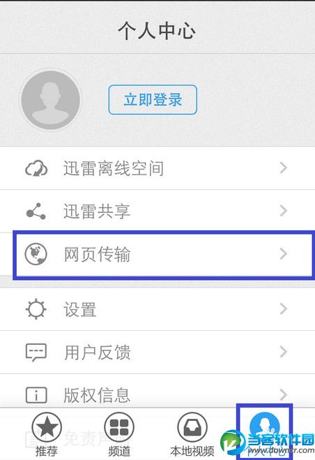 1打开迅雷看看以后,点击屏幕右下角的“个人中心”选项,然后再点击“网页传送”选项,如图所示