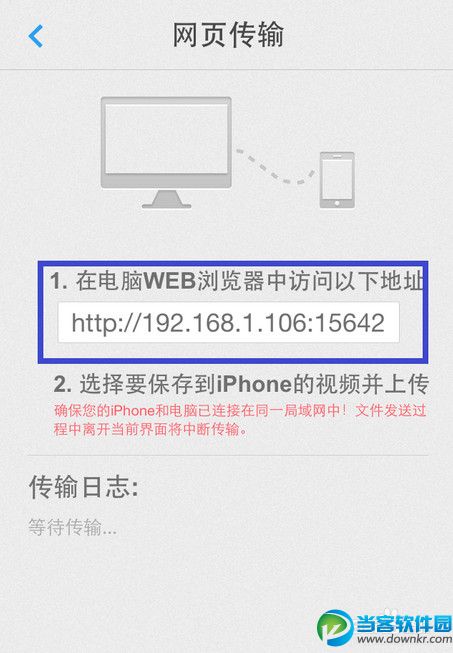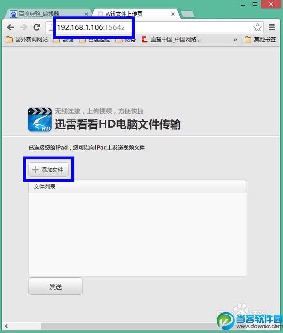 3在电脑上的网页浏览器中输入手机上看到的传送地址,点击“添加”按钮添加视频文件,如图所示