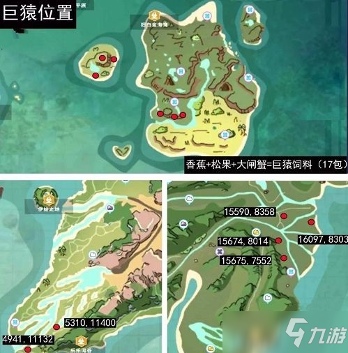 喂食香蕉+松果+大闸蟹=巨猿饲料(13包)稳定包捕捉到巨猿哦~