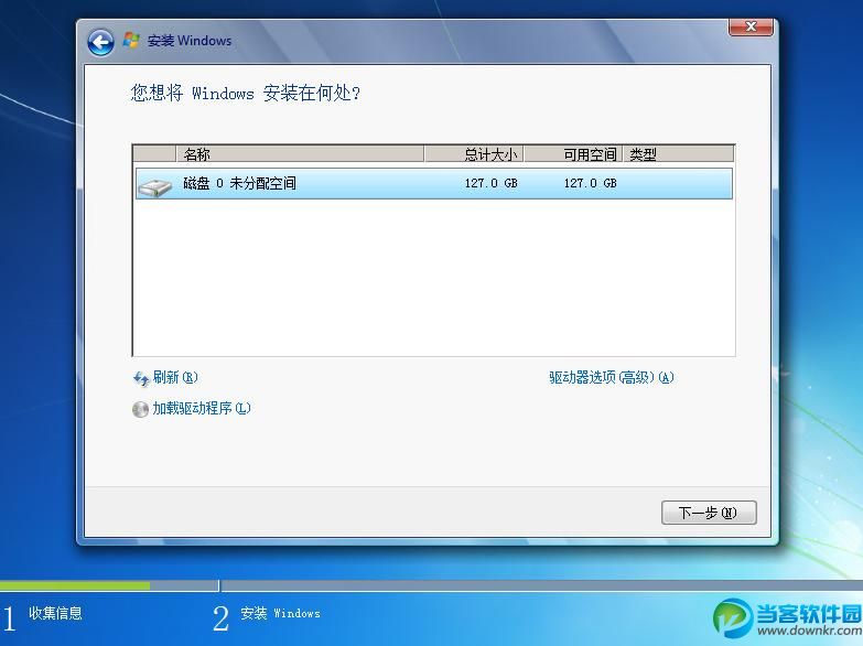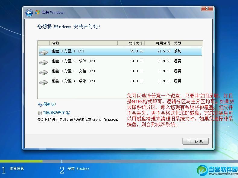 来到选择分区的界面,此时您无法也无需格式化磁盘。