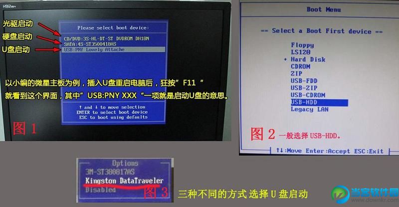 现多数电脑都设有快捷启动菜单,在打开电源后快速按键盘即可进入菜单(不同机器快捷键有所不同,主要集中在F12、ESC等,请主动尝试或观察开机的提示),辨别出你的U盘名称选择从U盘启动。