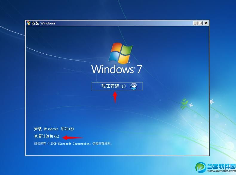 下面有两条路可选,安装系统选择现在安装,而修复计算机则是在系统故障时进行修复使用。