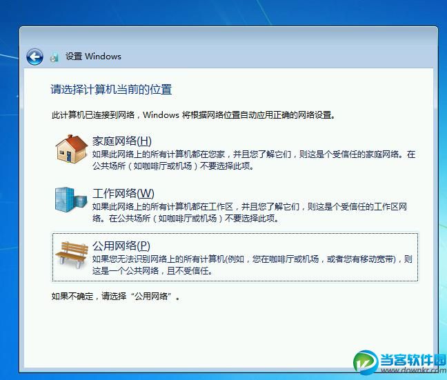 您可能还会看到下图,请根据实际情况选择,无法抉择请选公用网络。