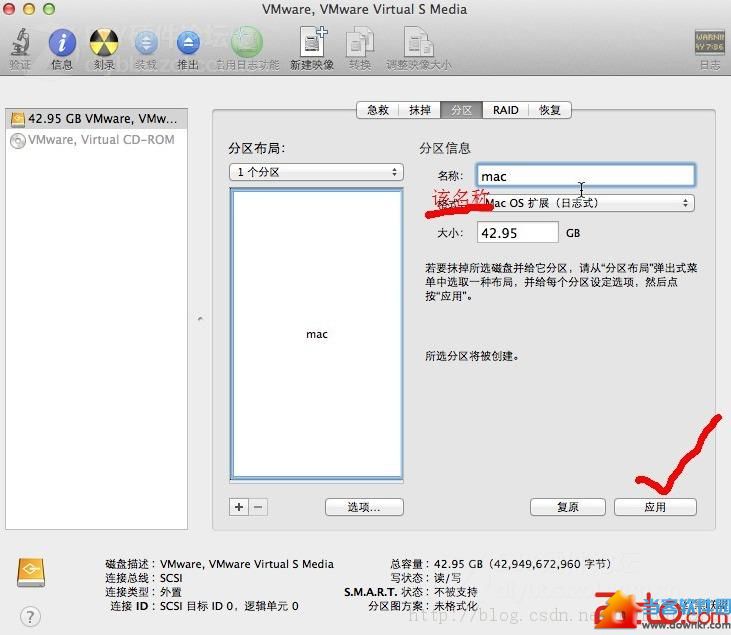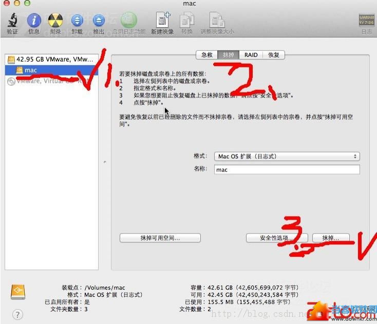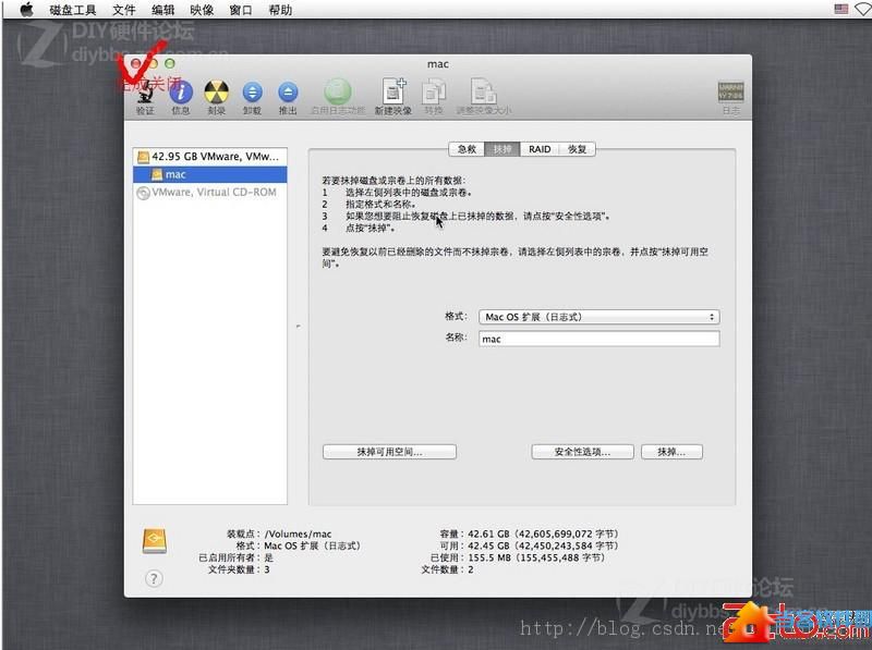 由于工作室开发需要,需要使用mac系统,所以这几天就研究了下在win7环境下实现mac·系统.本人在惠普,戴尔inter系统上测试成功。 下载地址: http://pan.baidu.com/share/link?shareid=59079229&uk=2970685369 然后打开补丁文件 必须选择下载的镜像 在这里,大家请根据自己的电脑配置进行选择,如果你点电脑是4核的,请选择“1”,“2”。 在这里虚拟机的内存可以选择2G(最好是2G,内存大的可以选择更高) 最好40G,我的电脑硬盘紧张,合了三个盘才30G,就分25吧在这里 接下来进行配置 1. 移除软盘 接下来打开虚拟机电源,进行安装 一定要选择抹掉 |