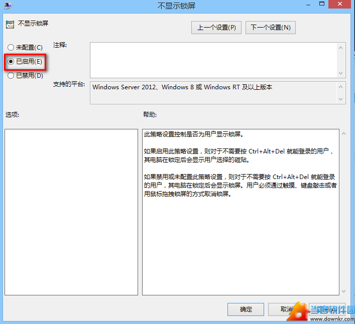 右击“不显示锁屏”,选择“编辑”,弹出窗口中选“已启用”。