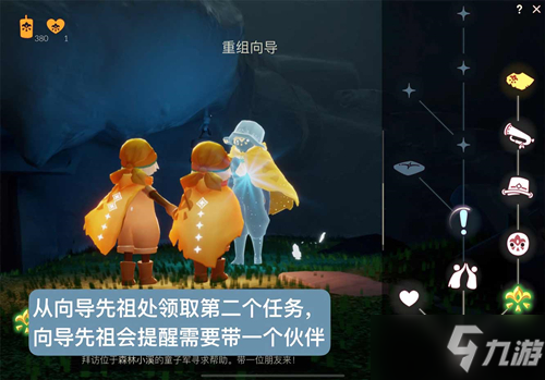 2、这是个双人任务,向导先祖会提醒带一个伙伴一起去做任务。