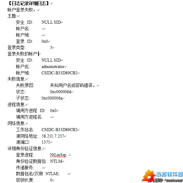 2.在日志》网络信息》源网络地址: 58.211.7.237 查到尝试登录IP