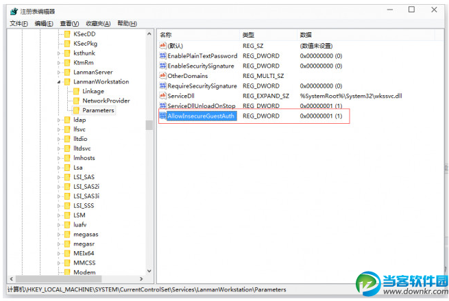 安装了Win10技术预览版9926后无法打开路由器挂载的硬盘,用管理账号也不行。自己碰见了,设置了老半天也没用,最终百度谷歌成功解决,分享解决方法给大家。 Win10 9926更新了系统安全策略,解决方式如下: 1、Win+R打开运行框-->regedit打开注册表编辑器 2、定位到HKLM\SYSTEM\CurrentControlSet\Services\LanmanWorkstation\Parameters 3、创建DWORD值并命名为AllowInsecureGuestAuth值为1即可 |