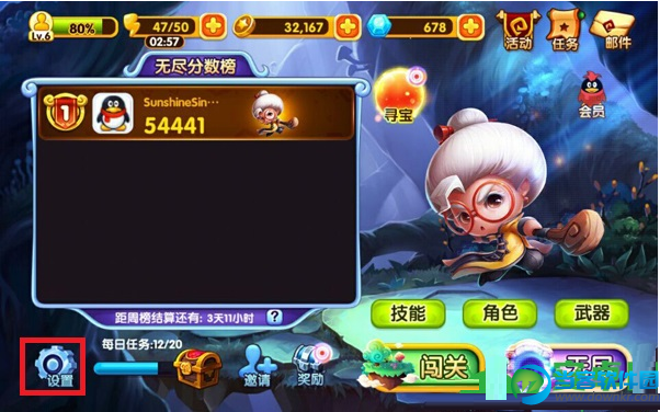 在宫爆老奶奶2游戏中,默认情况下老奶奶都是自动瞄准攻击的,这个让很多玩家不习惯,这里我们一起了解一下宫爆老奶奶2怎么控制攻击方向及武器自动瞄准怎么取消。 宫爆老奶奶2怎么控制攻击方向?武器自动瞄准怎么取消? 先进入游戏,然后找到左下角的【设置】按钮。