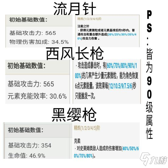 四星:流月针(高精)>决斗之枪>千岩长枪