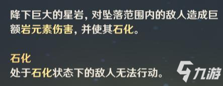 目前全角色元素爆发的最高倍率(不能通过反应增伤 ),只需要40点能量,同时伴随石化,是一个强力的群控技能,12s的CD充能快,可以频繁释放打出不俗的伤害,随便砸都能好几万伤害。