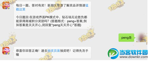 问:天天爱消除PK模式中,钻石场无论胜负都能获得商城积分奖励吗?(答题格式:peng+答案,例如答案是天天开心,则回复“peng天天开心”答题)