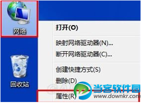 关闭命令提示符后,右击“网络”,选择“属性”: