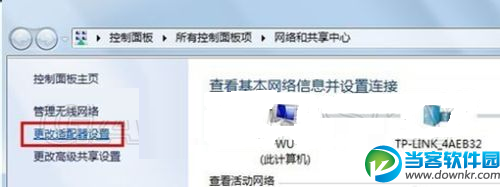在新打开的“网络和共享中心”的左边单击“更改适配器设置”: