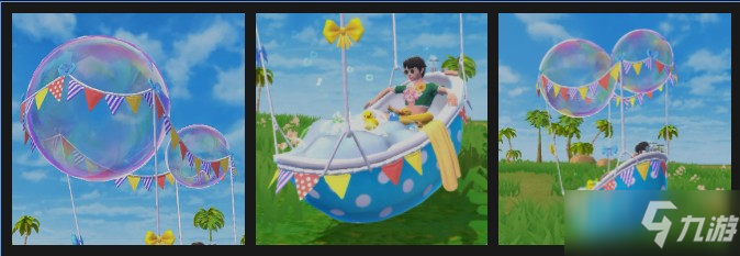 泡泡浴缸可是陆空坐骑,探险途中随心“浴”~在蓝天飞行时,升起的透明泡泡便会随风飘散。