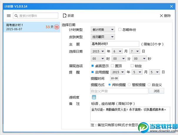 离高考只有短短一个月的时间,高三的学子们,一个月后就要面临人生的一次大挑战了,在如此大的压力下,可能会因为事情多而耽误了一些重要事情或重要考试,人生日历贴心时刻提醒您,现在使用人生日历计时器功能,就不用担心考试被耽误啦,而且还能够督促我们及时复习或者对工作的充份准备,人生日历是您身边不可缺少的好帮手。 首先下载安装人生日历客户端,打开软件,点击右下角的应用按钮,在跳转出来的应用盒子界面上找到计时器插件(如下图)。 ![]() 计时器分倒计时类和顺计时类两种,您可根据自己喜欢进行选择。如下图,用户可根据喜好,选择计时类型、皮肤类型等,还可自行设置主题,提醒时间及提醒方式。最后,还可以自行在备注里设置30字以内的标语、座右铭等,只有部分样式才会显示的。 ![]() 高三的学子们,离高考已越来越近,现在就和小编一起制作高考倒计时提醒吧!全力以赴,用勤奋改变人生;永不言败,以执著成就未来! ![]() 奋力为高考做准备的同时,身体健康也很至关重要,小编强力推荐您使用人生日历健康助手,为自己制定一个健康计划!如下图,设置定时休息、定时喝水,做到劳逸结合,以最充沛的精力迎接高考! ![]() 人生日历的这两个实用小功能,考生们学会了吗?最后,人生日历祝各位即将参加高考的学子,都能实现自己的大学梦! 十年寒窗苦,只为一刻甜! 一起加油吧!成功就在前方不远处向你们招手! |