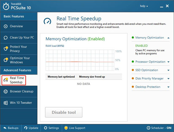 6、Real Time Speedup提供了实时加速功能,用户可以 在您最需要时提供智能实时性能监控和增强功能,启用所有工具以获得最佳效果和更高的整体提升。